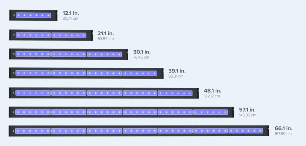 Die Leuchten BLADE GROW, BLADE GLOW und BLADE FRESHWATER sind in 7 verschiedenen Größen erhältlich. sodass für jede Beckengröße und jede Anwendung etwas dabei ist.