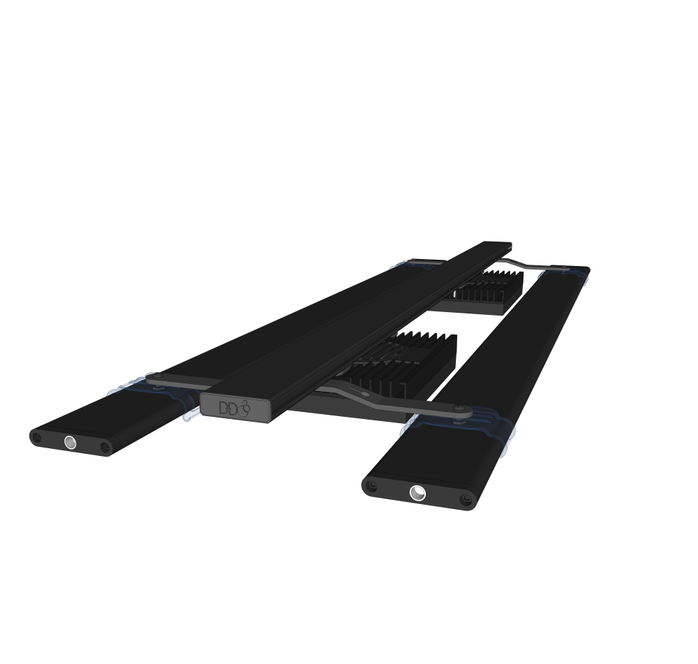 - Hybrid-Montage von 2 x AI Blade LED Lichtern neben AI Hydra 26/32/52/64 LED Lichtern auf der D-D OTM Schiene.